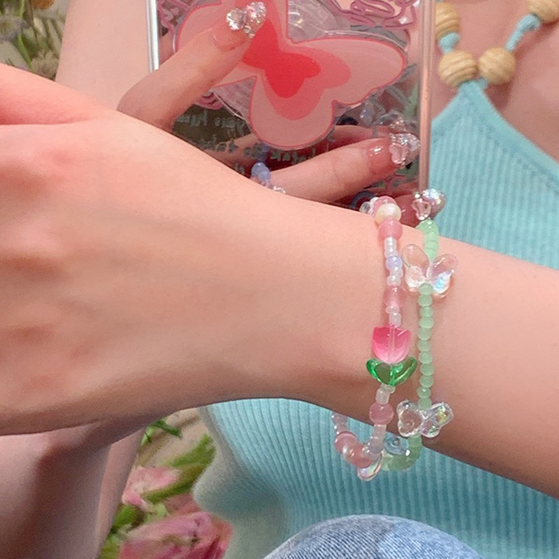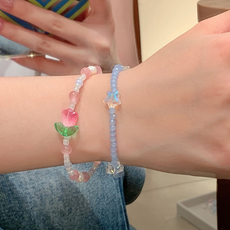 Summer Atmosphere All-match Colorful Beaded Tulip Bracelet Women's ins Niche Design Star Girlfriend Bracelet