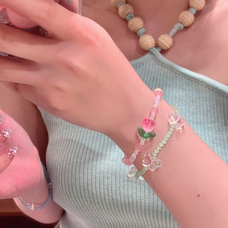 Summer Atmosphere All-match Colorful Beaded Tulip Bracelet Women’s ins Niche Design Star Girlfriend Bracelet