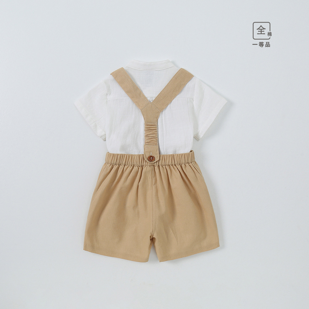 Summer Baby Boy Gentleman's suit Baby Strap Pants Short-sleeved Hundred Days Birthday Party Dress Handsome Children