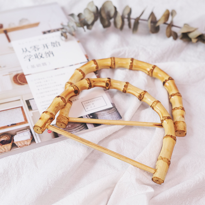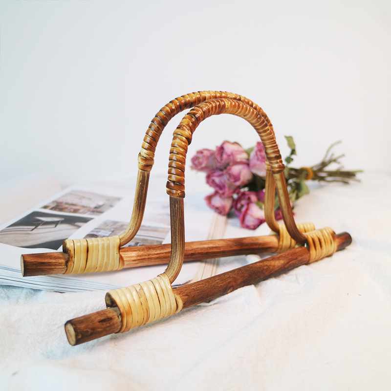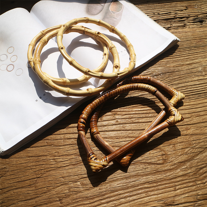 Summer bamboo handle DIY woven bag portable accessories bamboo rattan handle handmade cloth bag bamboo handle bamboo ring