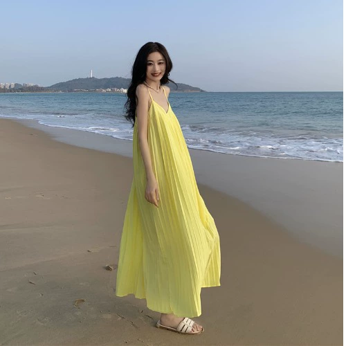 | nameOriginal | Summer beach loose thin pleated photo suspender skirt |