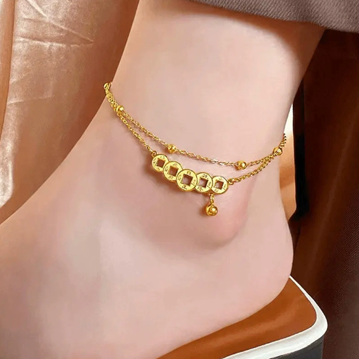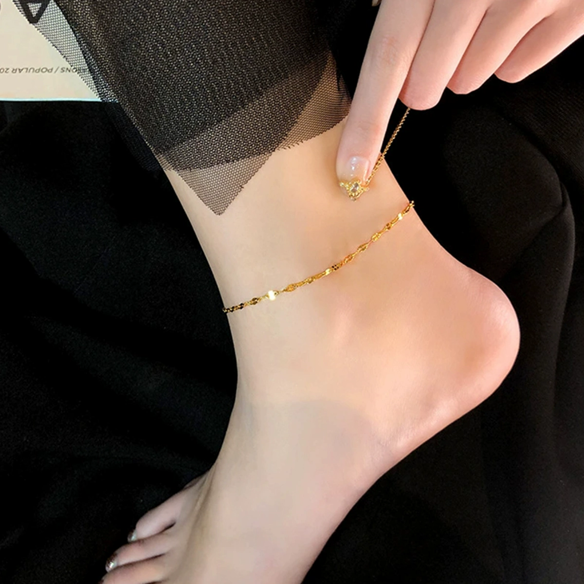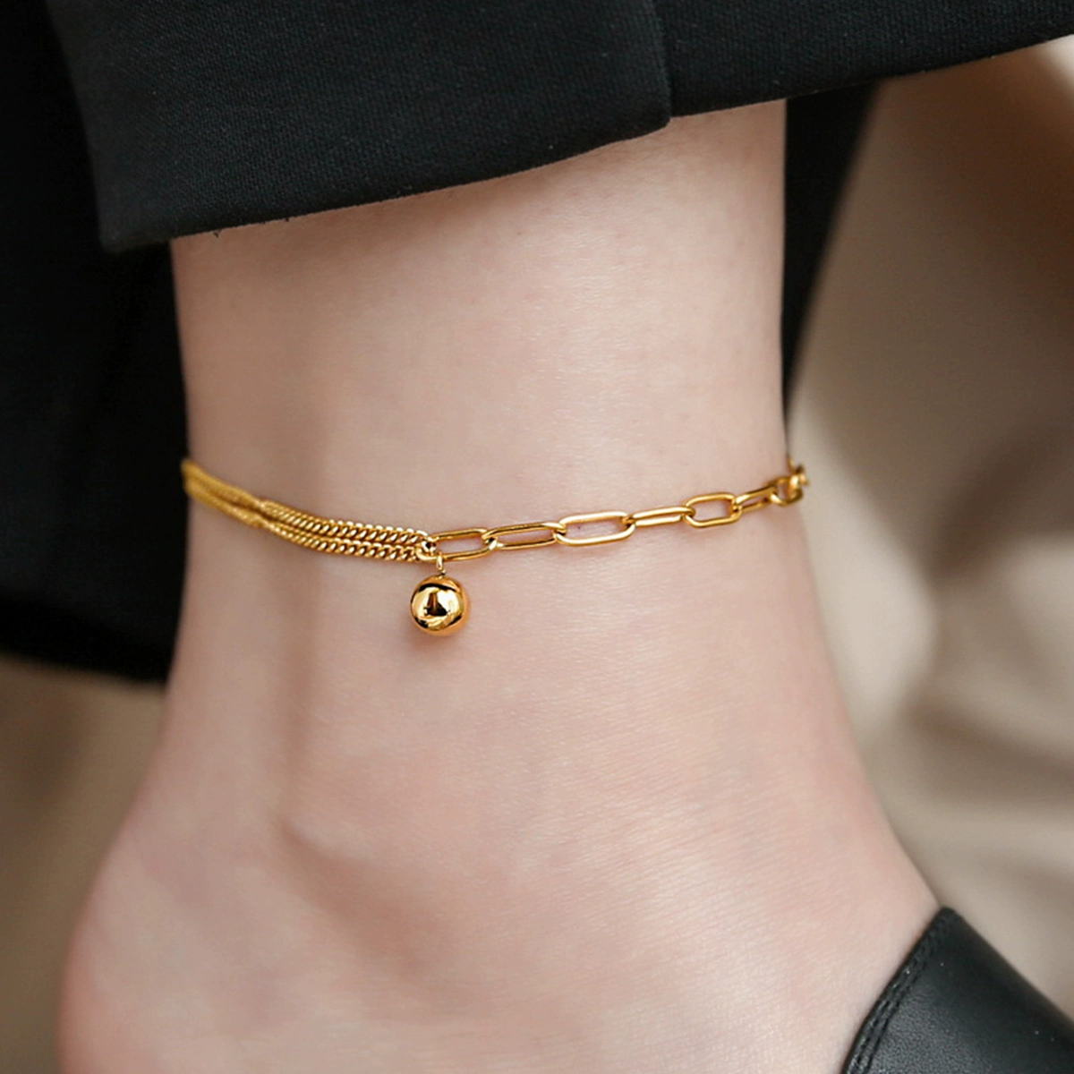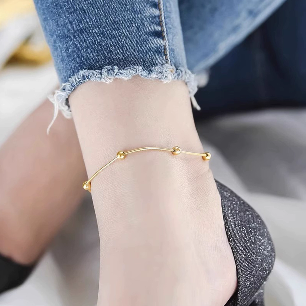 | nameOriginal | Summer beach titanium steel non-fading anklet for women 2024 new trendy fortune bell new sexy European and American accessories |