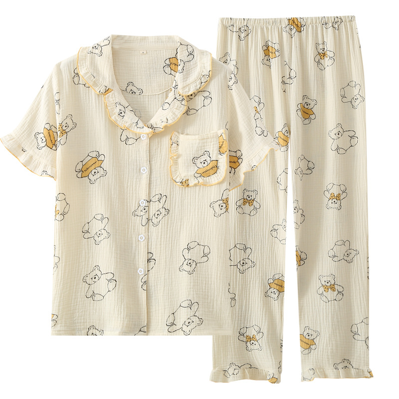 | nameOriginal | Summer Bear Pajamas Women Thin Cotton Cotton Yarn Short-sleeved Trousers Spring and Autumn Cute Home Clothes Set |