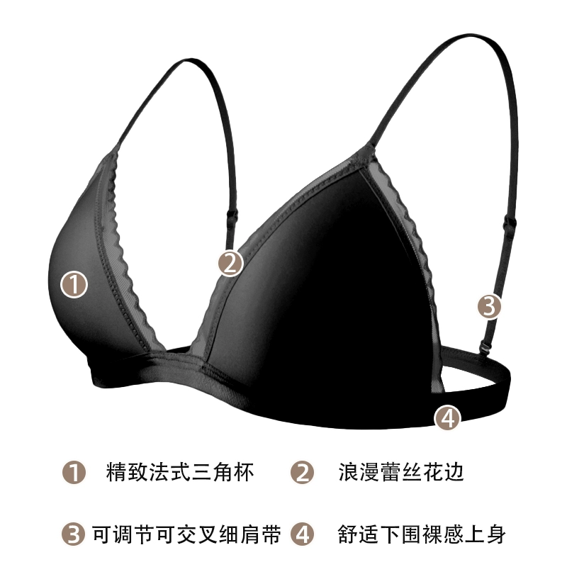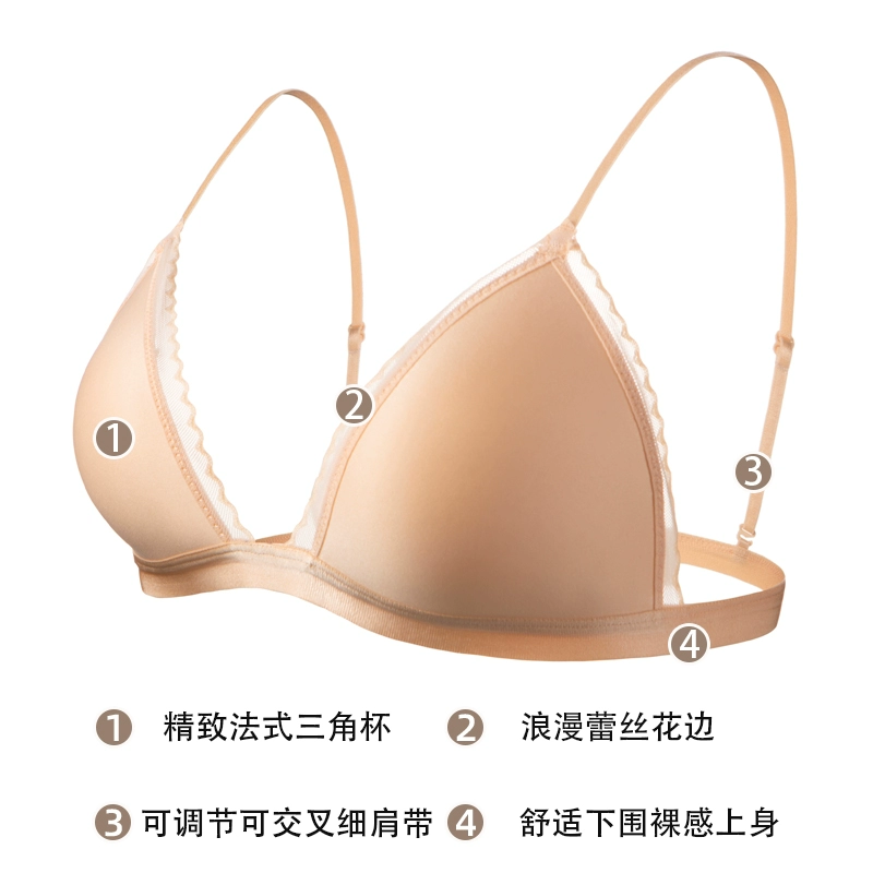 | nameOriginal | Summer beautiful back strap ultra-thin glossy seamless sexy bikini bra French triangle cup underwear for women with small breasts |