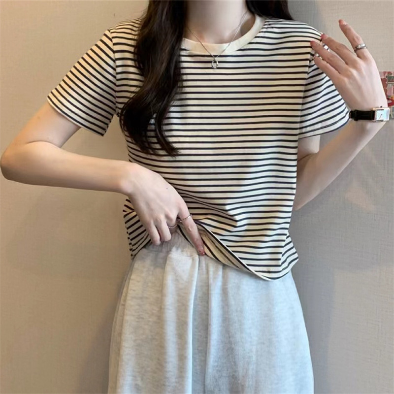 | nameOriginal | Summer Beautiful Fashion Stylish Small Body-Slimming Short T-shirt Contrast Color Pinstripe Short Sleeve T-shirt Women's Top |