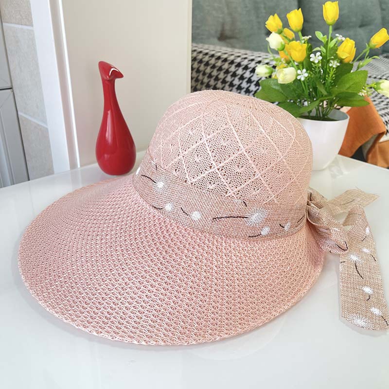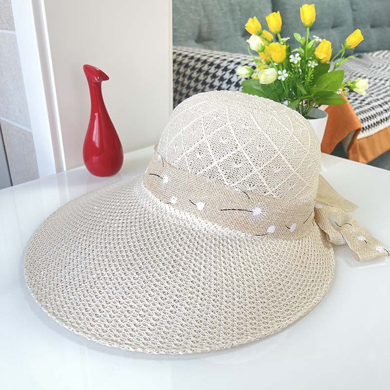 Summer Big Riding Duck Tongue Straw Hat Korean Style Bow Knot Sunscreen Hat Women's Outdoor Travel Straw Sun Hat All-match