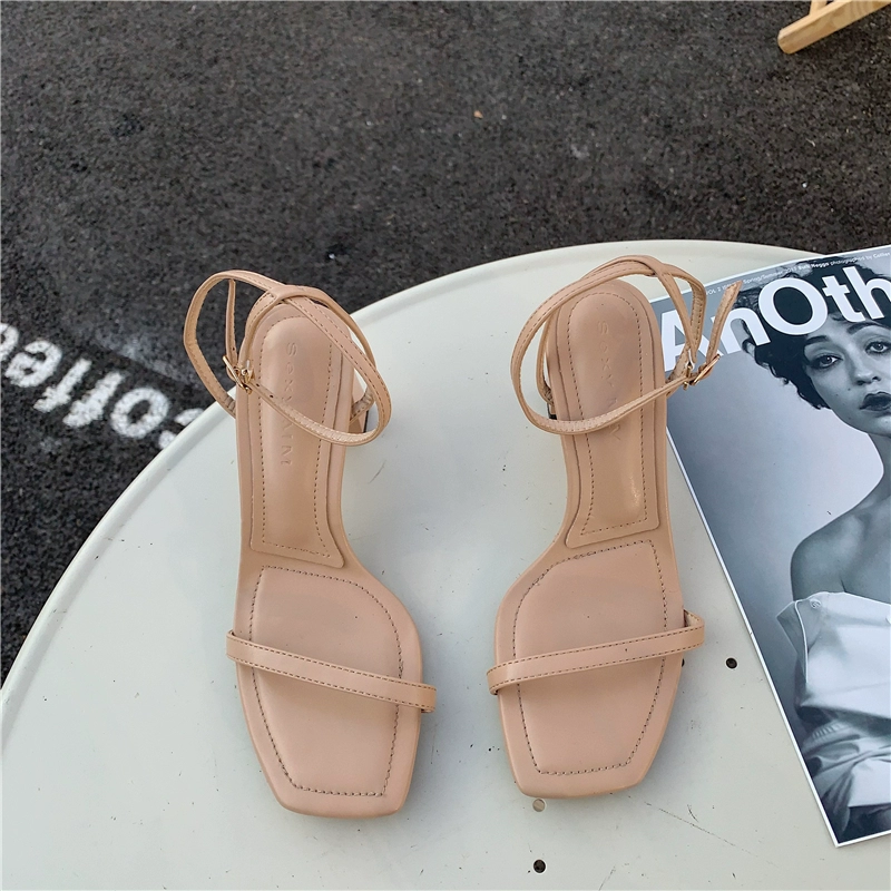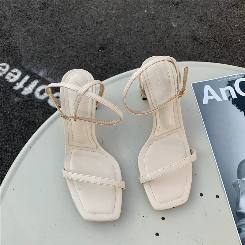 | nameOriginal | Summer black buckle fairy style thick heel square toe sandals |