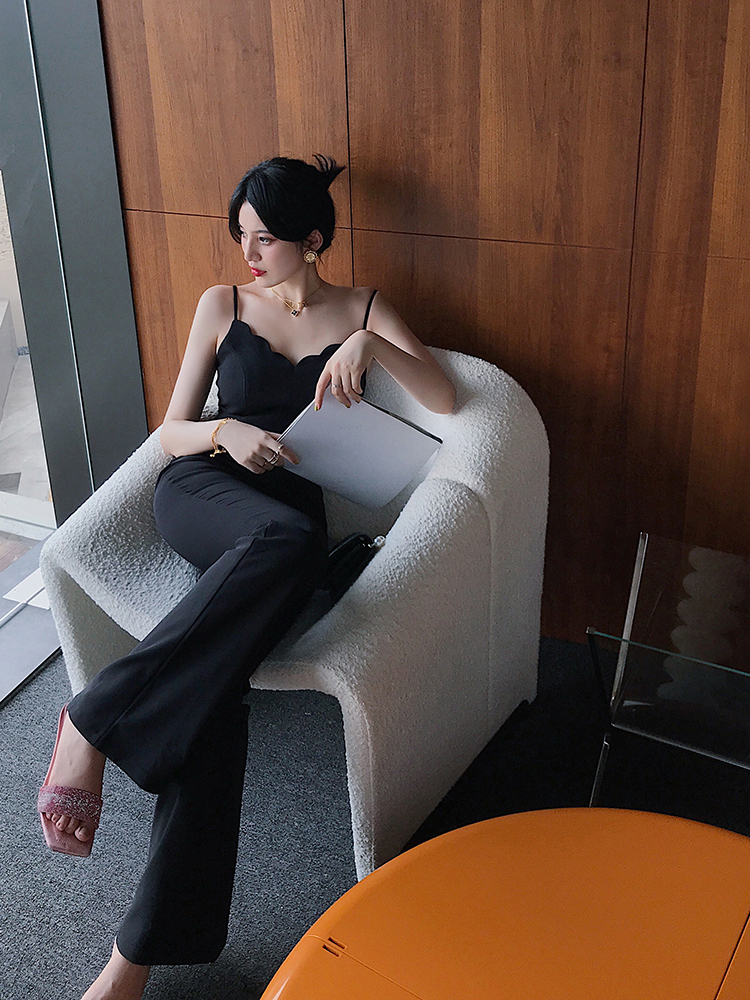 | nameOriginal | Summer black chic high-end v-neck high-waisted slim-fit suspender jumpsuit suit for women with flared wide-leg pants |