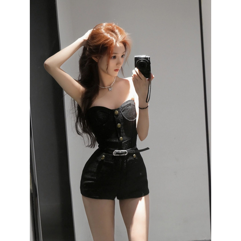 | nameOriginal | Summer black Hot Girl women's clothing fashionable heavy work high waist sexy tube top jumpsuit belt backless slimming short pants |