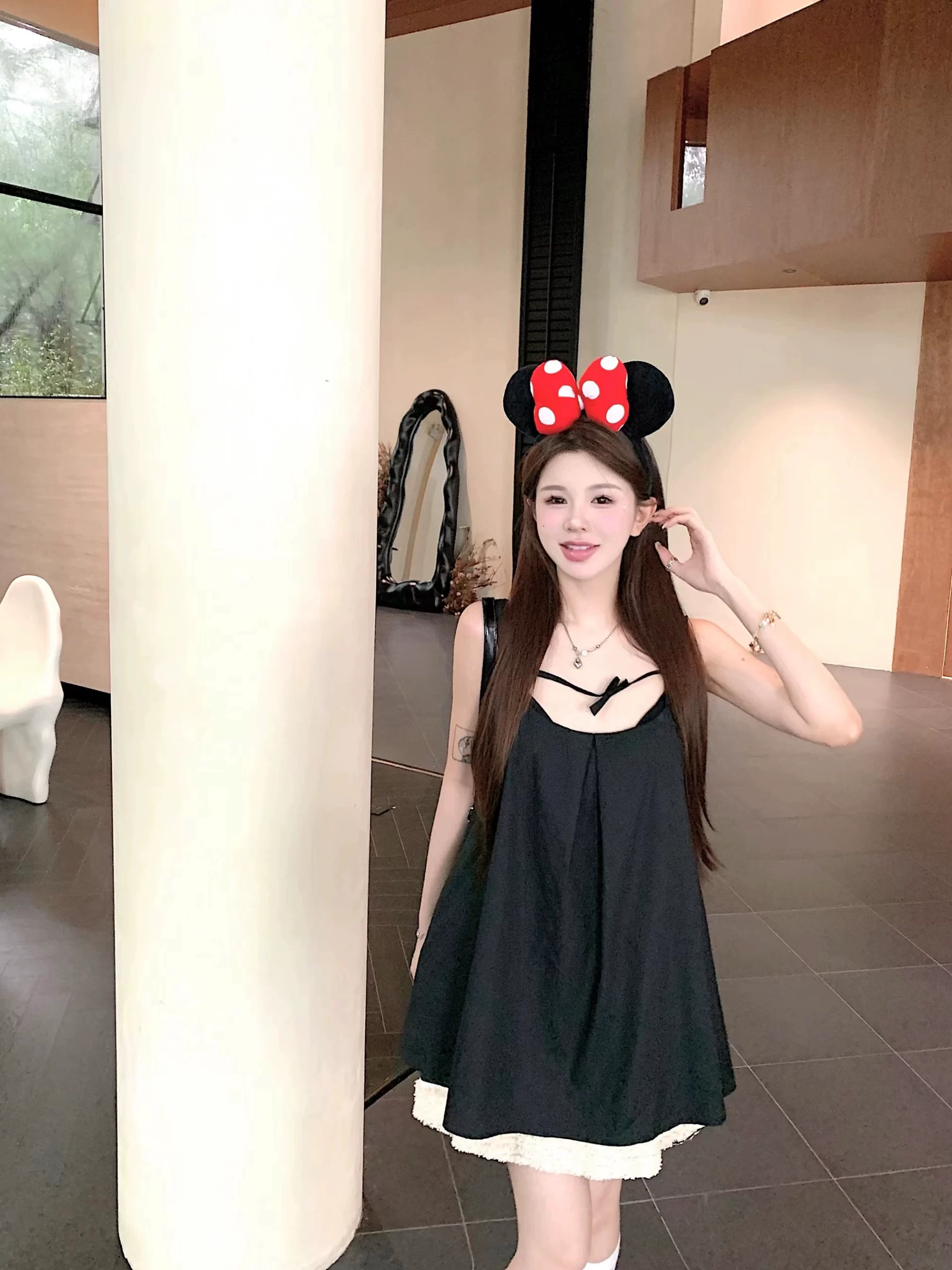 | nameOriginal | Summer black loose flesh-covering u-neck suspender dress |