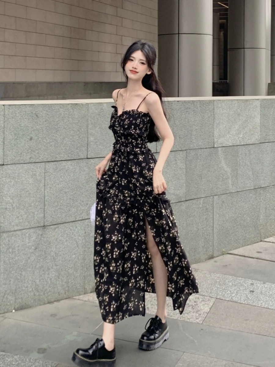 | nameOriginal | Summer black plus size fat mm French floral dress |