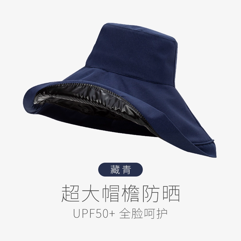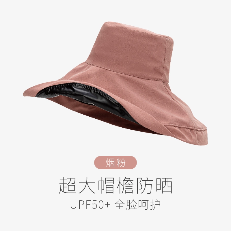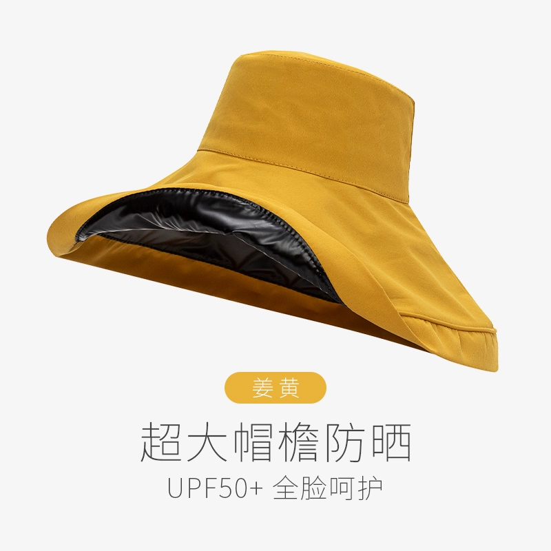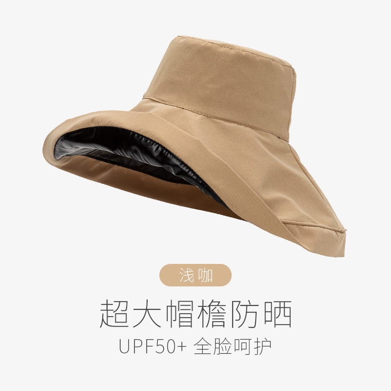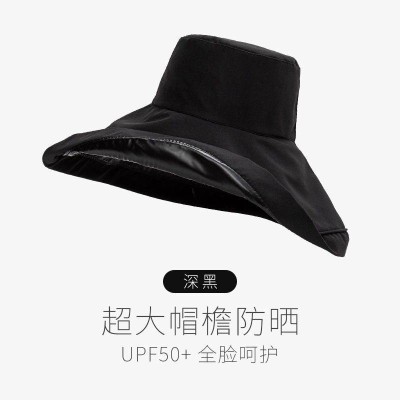 Summer black rubber women's anti-UV face covering hat with large brim