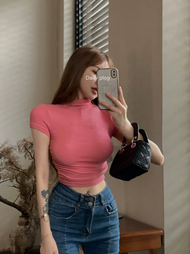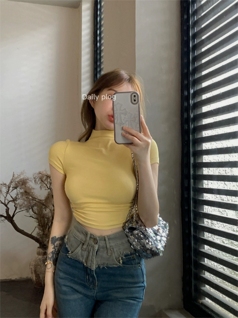 | nameOriginal | Summer Blue Half Turtle Neck Slim Top Short Sleeve T-Shirt |