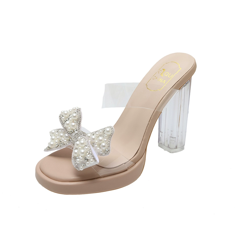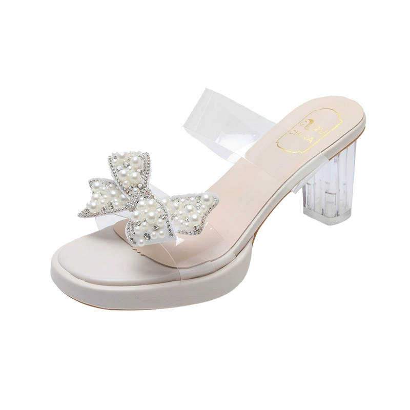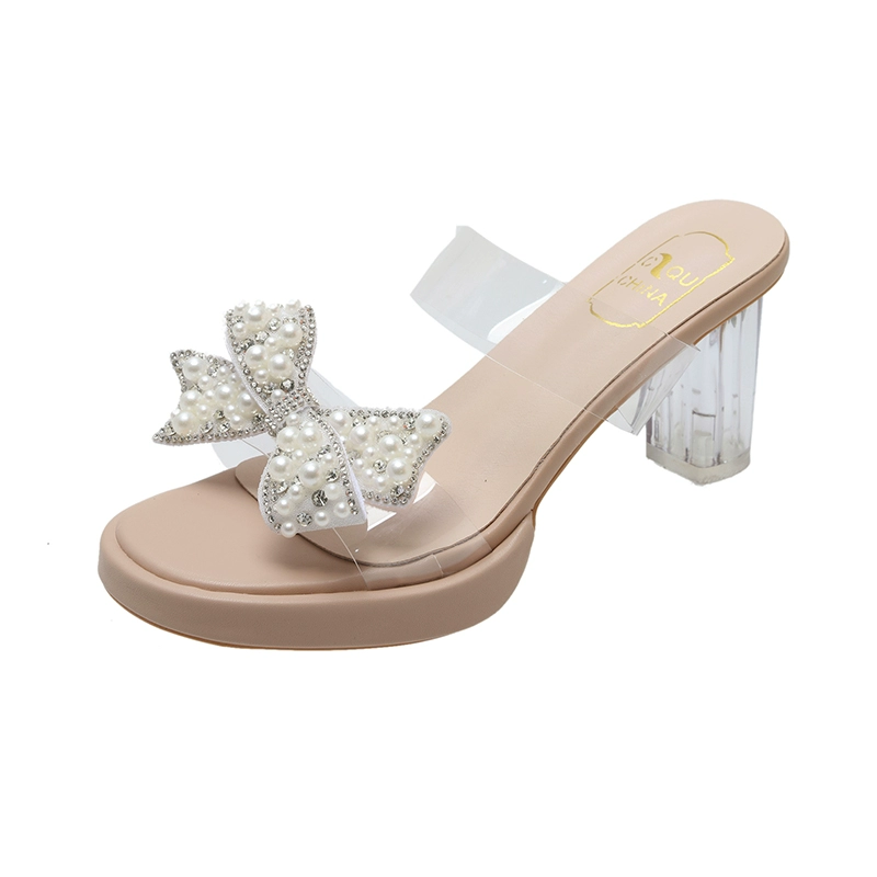 | nameOriginal | Summer bow thick high heel crystal strappy sandals |
