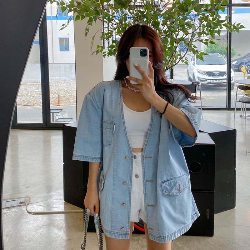 | nameOriginal | Summer Boyfriend Style Washed V-Neck Single-breasted Loose Casual Thin Cotton Denim Short-sleeved Jacket for Women |