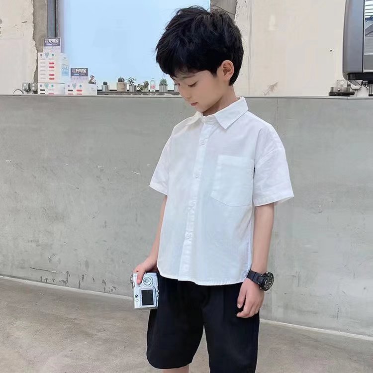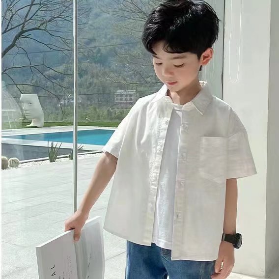 | nameOriginal | Summer Boys' Cotton White Shirt Korean Style Half-sleeved Top 2024 New Children's Ice Silk Short-sleeved Shirt for Middle and Large Children |