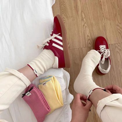 | nameOriginal | Summer breath ~ Japanese fresh cloth label Solid color pile socks women's spring and summer cotton ins Wind color double needle |