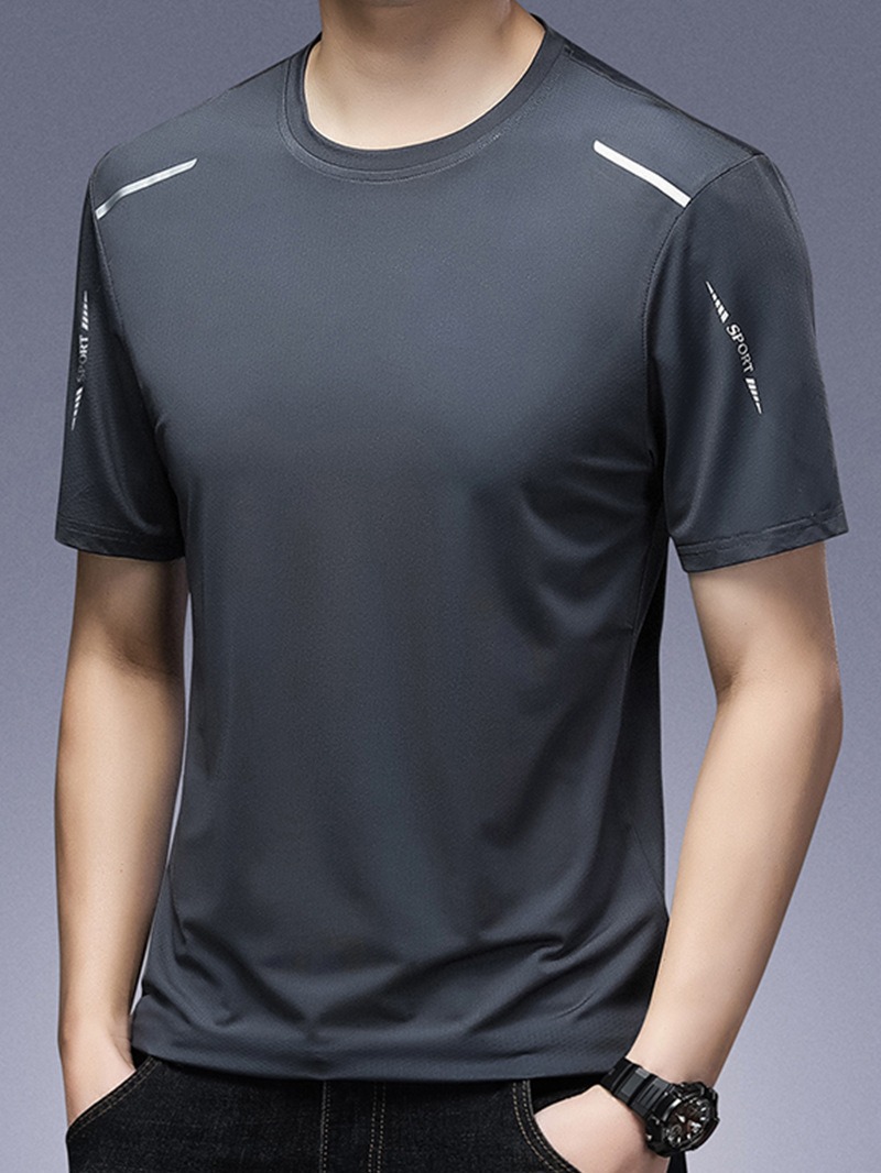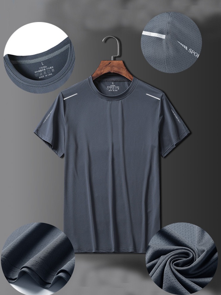 | nameOriginal | Summer breathable quick-drying solid color sports casual printed round neck plus size men's T-shirt Ice Silk short sleeve T-shirt men |