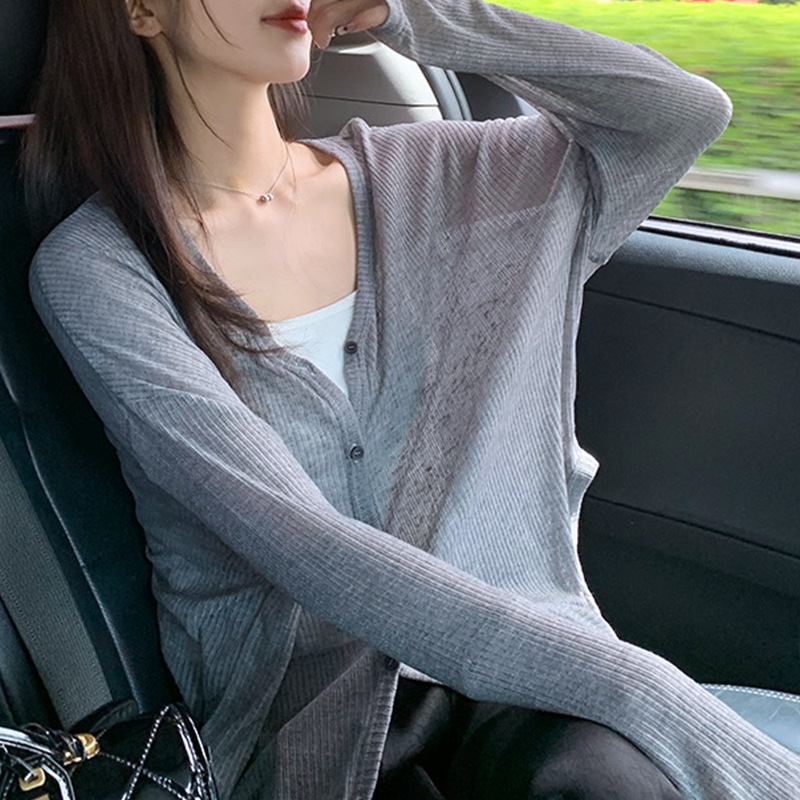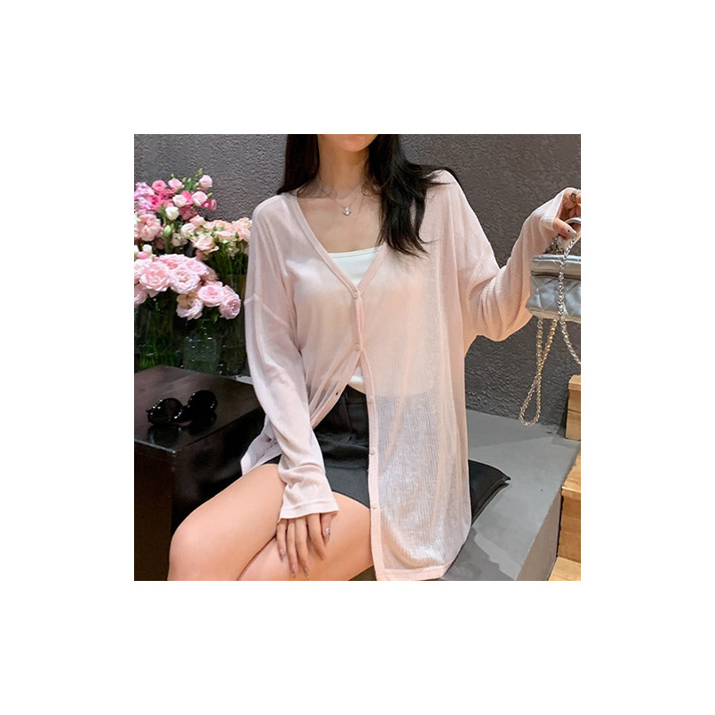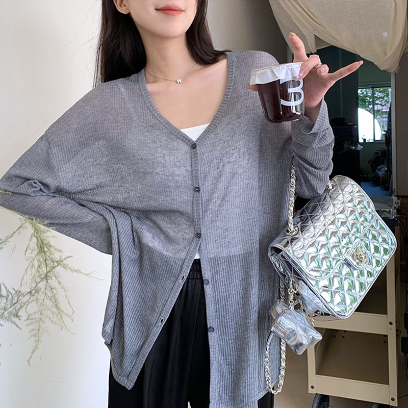 | nameOriginal | Summer Breathable Thin Air-conditioning Shirt Jacket Elegant V-neck Knitted Cardigan Women's Sunscreen Top Loose Ice Silk Long Sleeve |