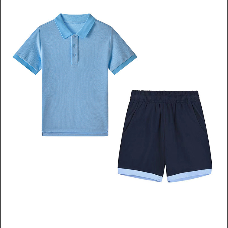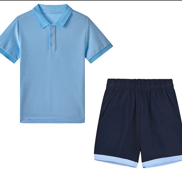 | nameOriginal | Summer British style school uniform for primary and secondary school students short sleeve pearl cotton polo shirt pure blue T-shirt children's class uniform garden clothes |