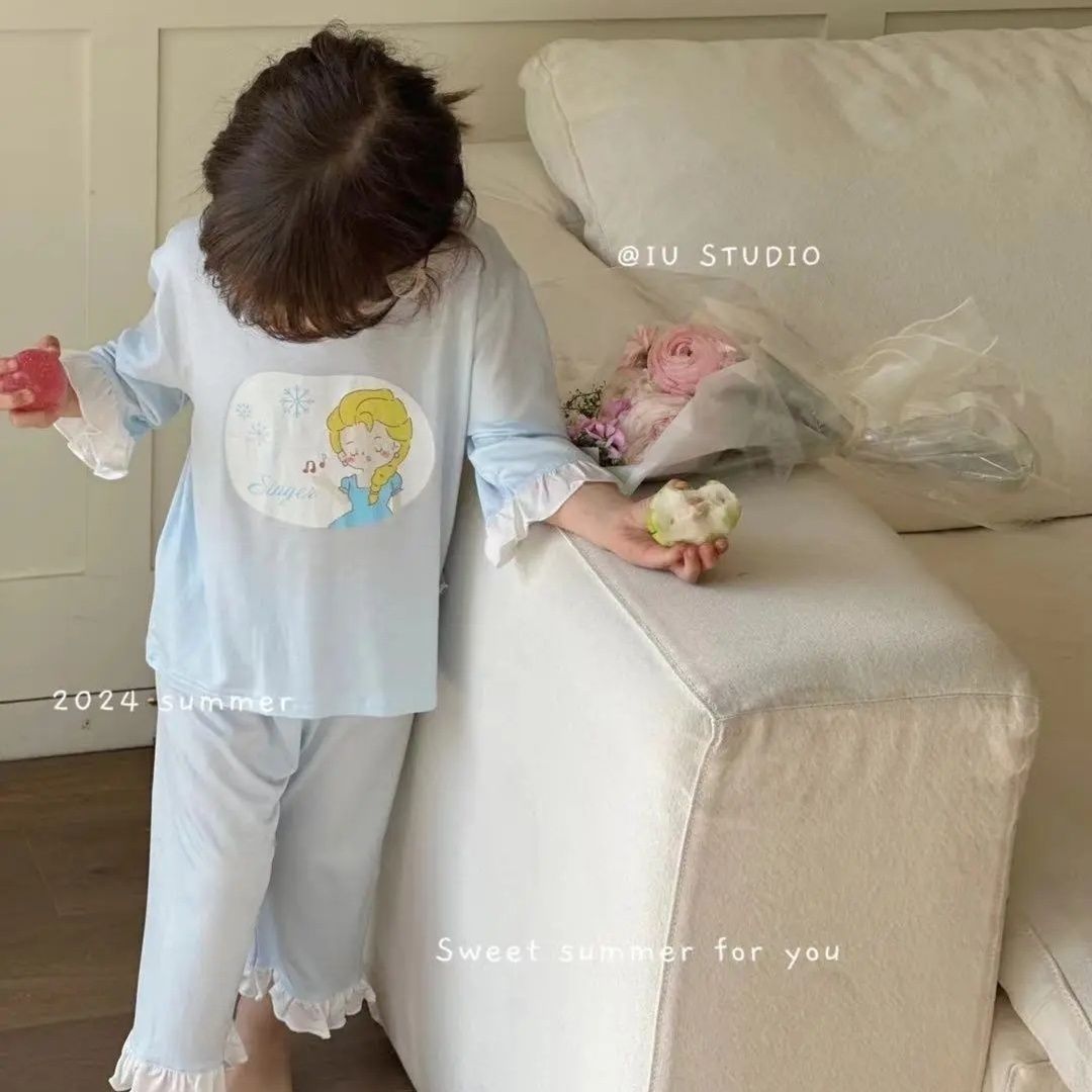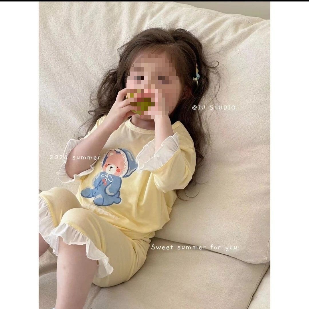 | nameOriginal | Summer Candy Color Girls' Short-sleeved T-shirt Sweet Printed Home Clothes Set Modal Cotton 0224A022 |