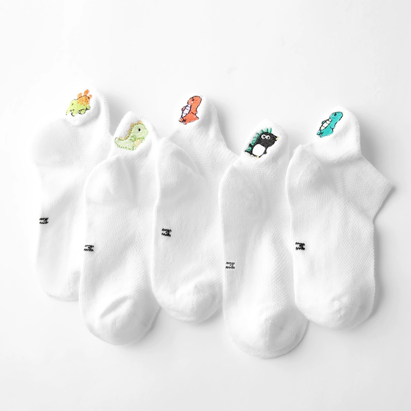 Summer cartoon embroidered dinosaur shallow mouth children’s socks