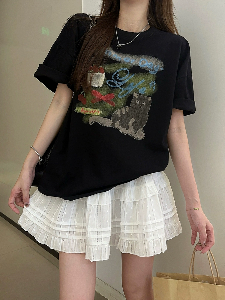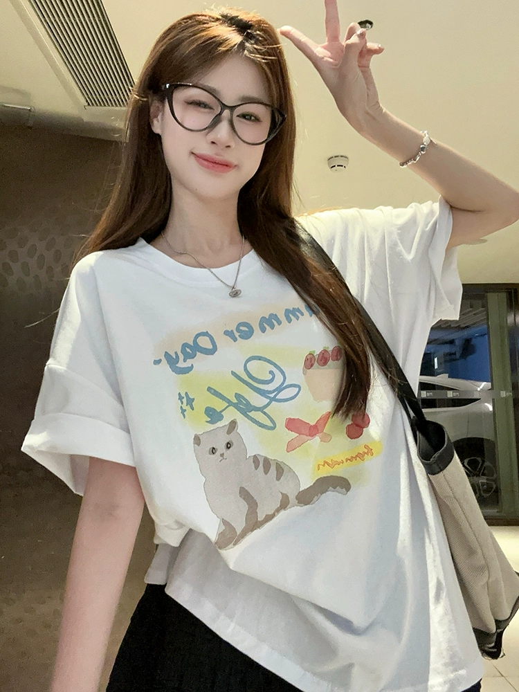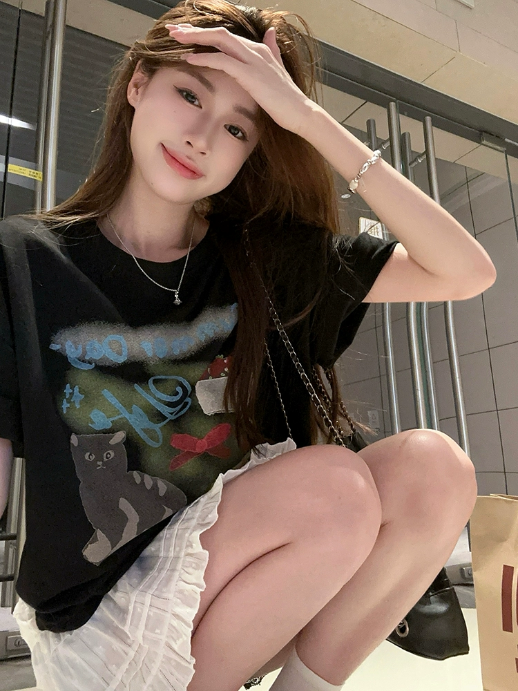 | nameOriginal | Summer casual loose slimming ins printed short-sleeved T-shirt |