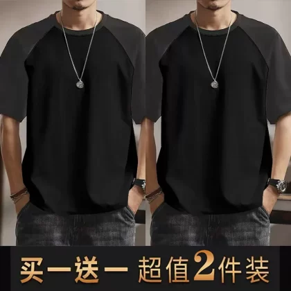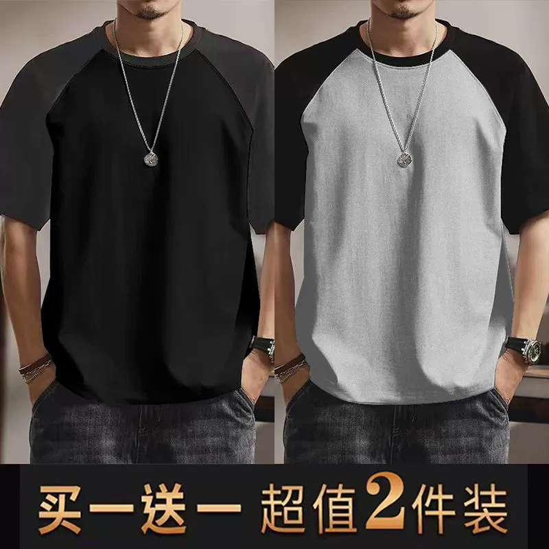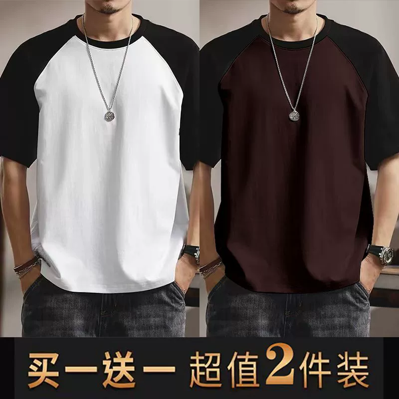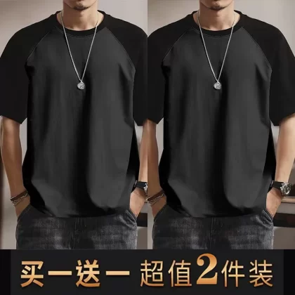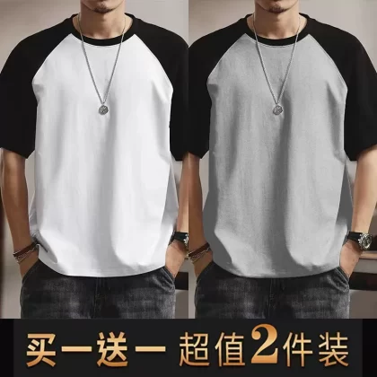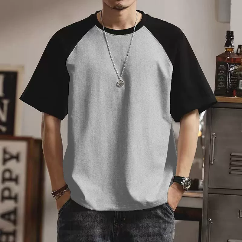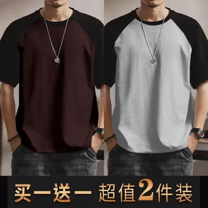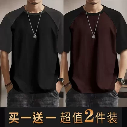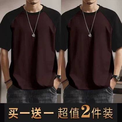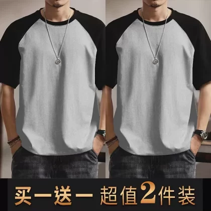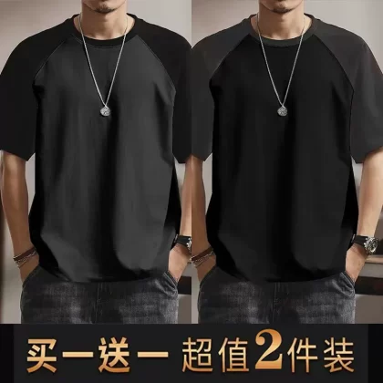 | nameOriginal | Summer casual men's short-sleeved T-shirt round neck contrasting color splicing slim body shirt loose trendy half-sleeved tops for men |