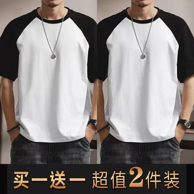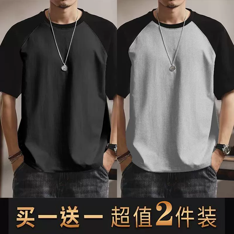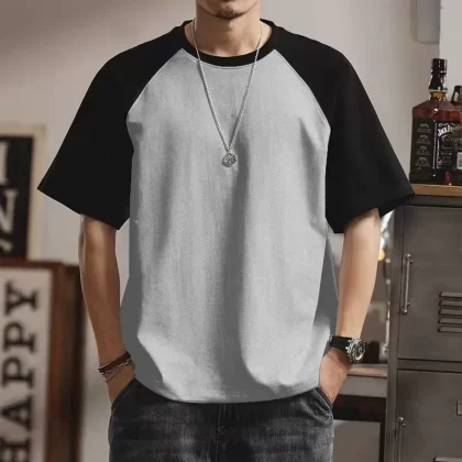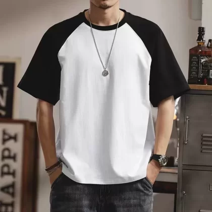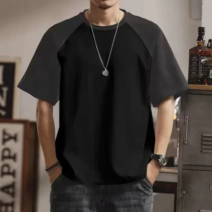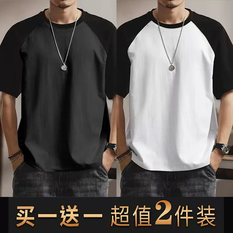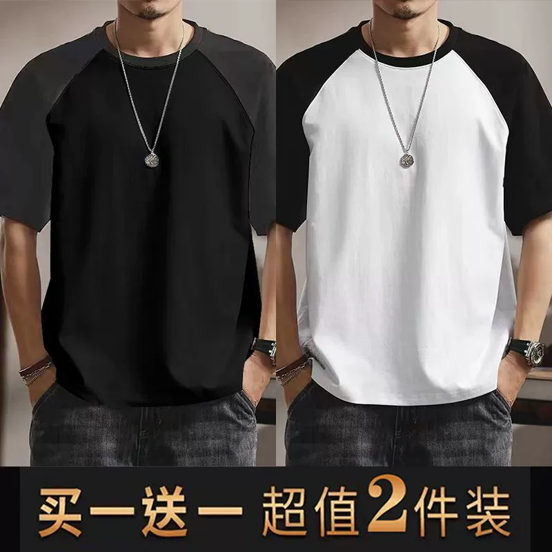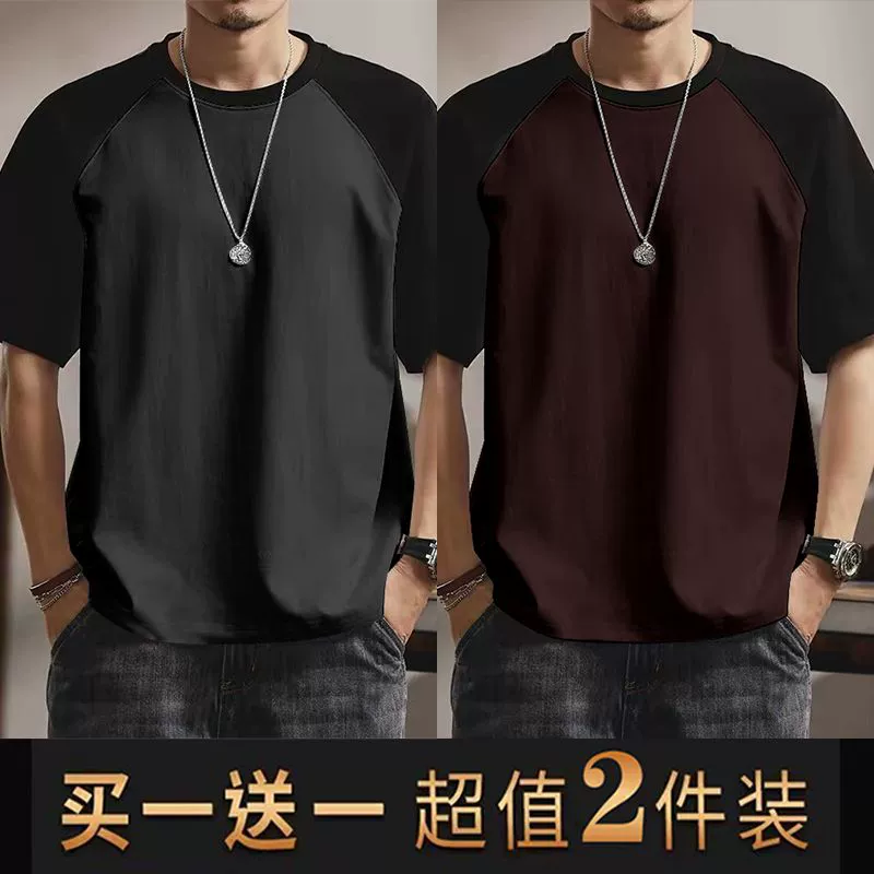 | nameOriginal | Summer casual men's short-sleeved T-shirt round neck contrasting color splicing slim body shirt loose trendy half-sleeved tops for men |