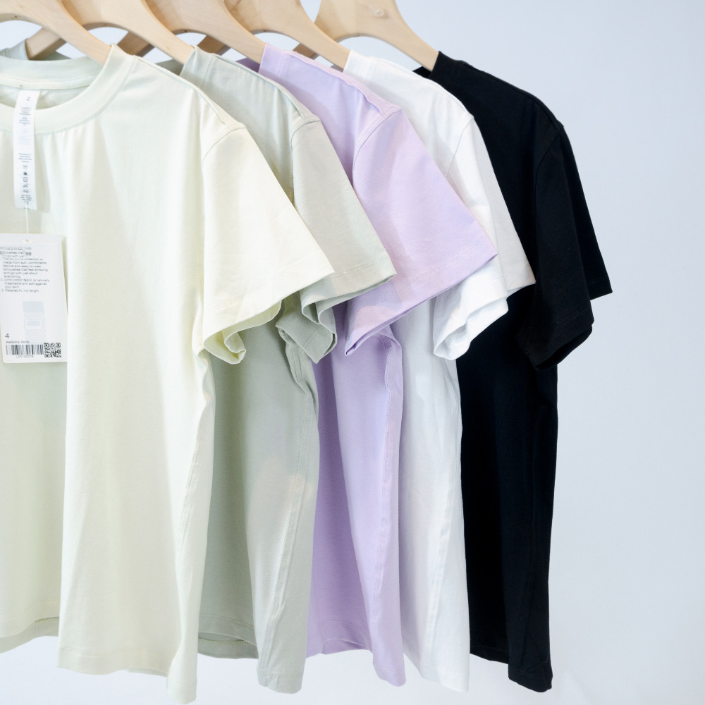 Summer casual short sleeve candy color slimming loose plus size cotton T quick-drying breathable sports yoga light elastic thin