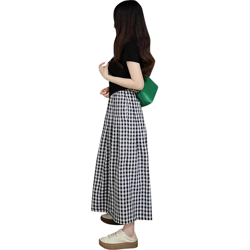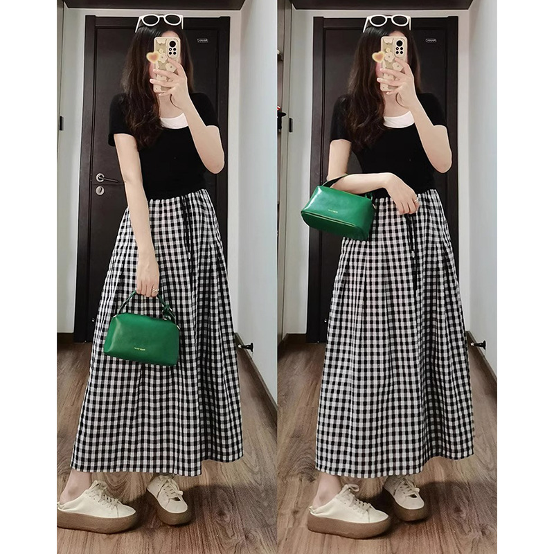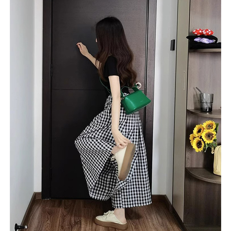 | nameOriginal | Summer Casual Two-Piece Women's Royal Sister Gentle Style Wear Black Top Super Loose Plaid Wide-Leg Pants suit |