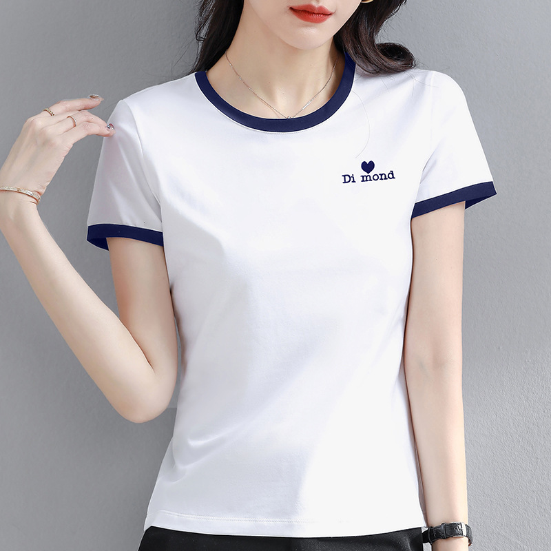 | nameOriginal | Summer casual white short-sleeved T-shirt women's color matching top 2024 Summer new slim fit waist-tight beautiful T-blood shirt |
