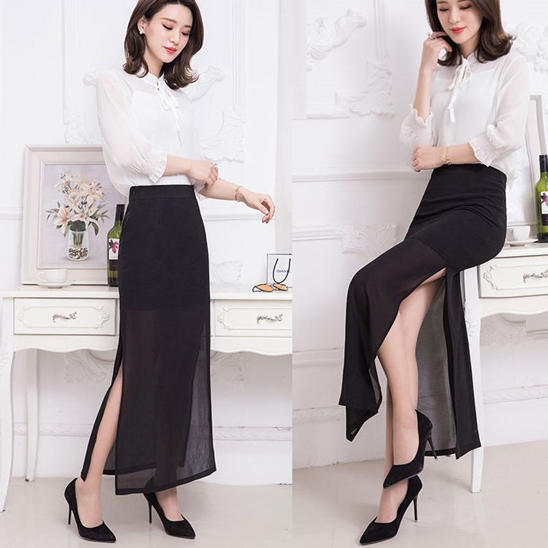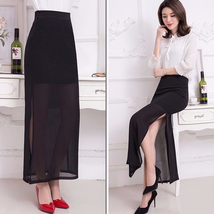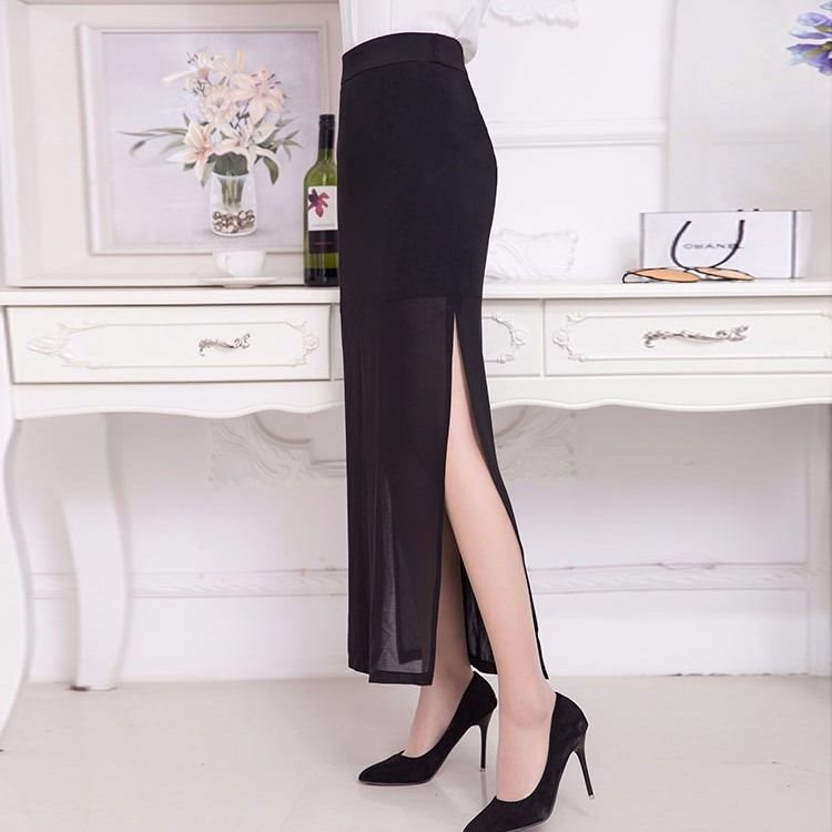 | nameOriginal | Summer Chiffon Mid-length High Waist Skirt Women's Sexy Hip Skirt Black Straight Skirt Split One-step Skirt plus size |
