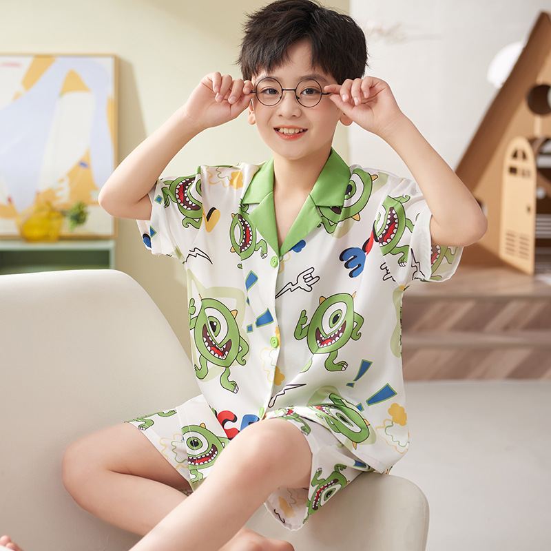 | nameOriginal | Summer Children's Ice Silk Pajamas Boys Summer Thin Men's Short-sleeved Cartoon Boys' Baby Middle and Old Children's Home Clothes |