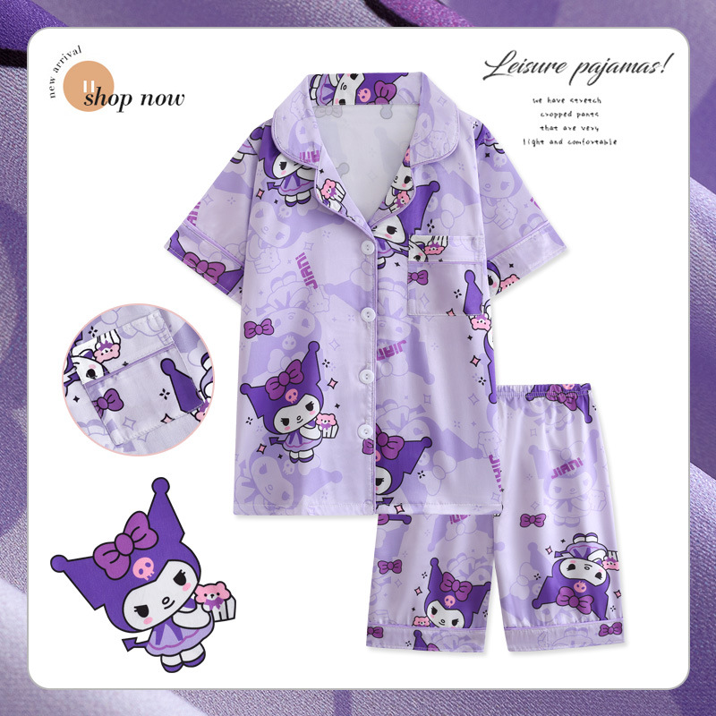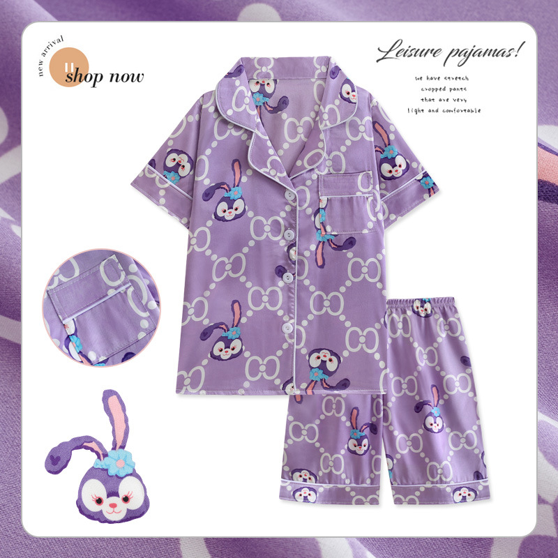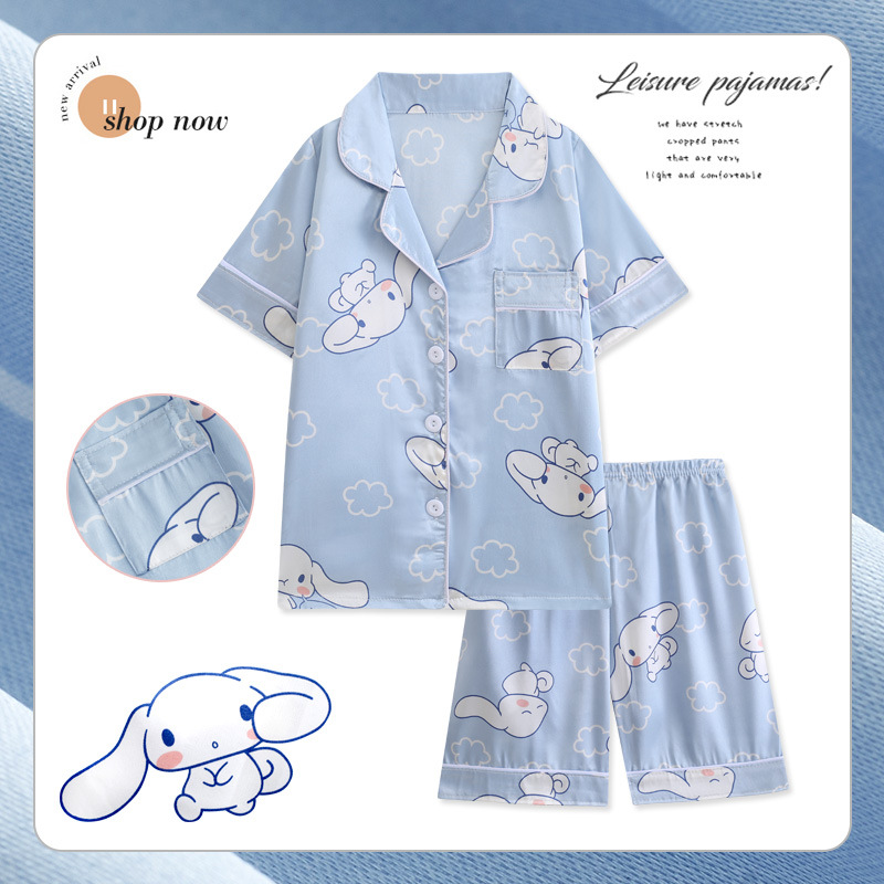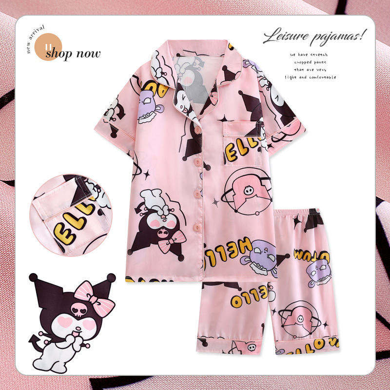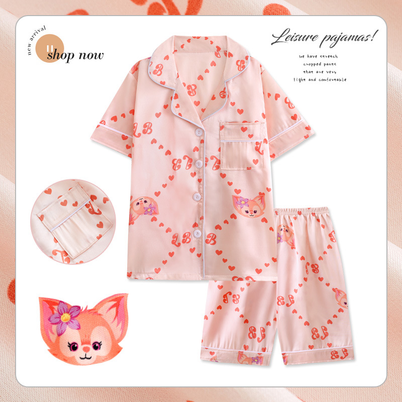 | nameOriginal | Summer Children's Pajamas Girls Ice Silk Short Sleeve Cardigan Sweet Cartoon 3-12 Home Clothes for Small and Medium-sized Baby Boys and Girls |