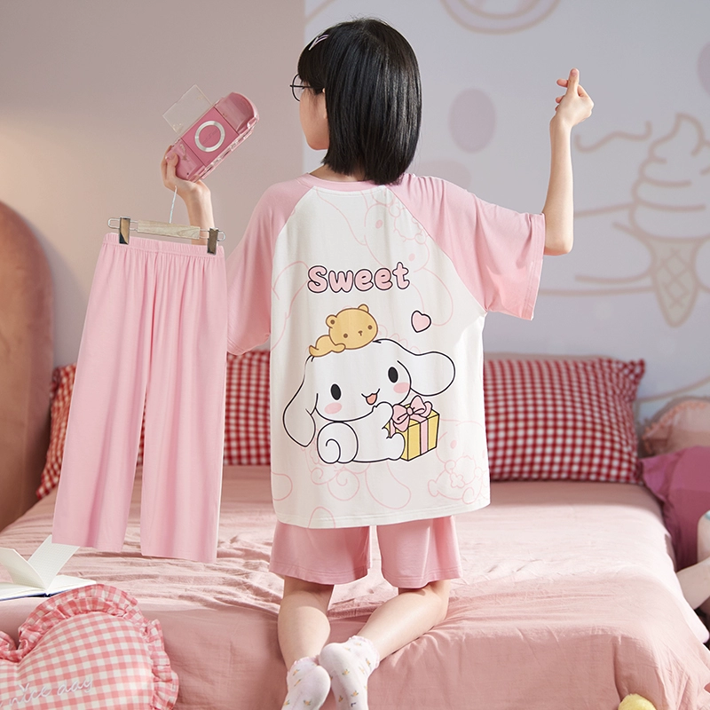 Summer children’s pajamas pure cotton thin short-sleeved trousers three-piece suit Melody girl parent-child mother-daughter home clothing