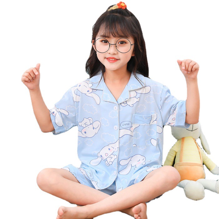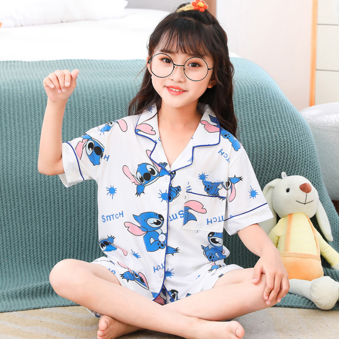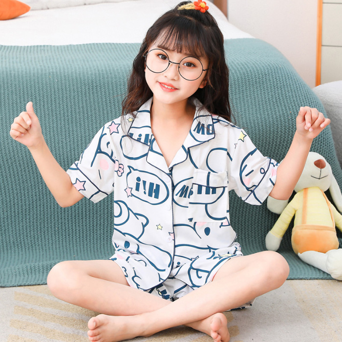 | nameOriginal | Summer Children's Pajamas Women's Thin Imitation Cotton Lapel Short-sleeved Cartoon Sweet Loose Home Clothes for Kids |