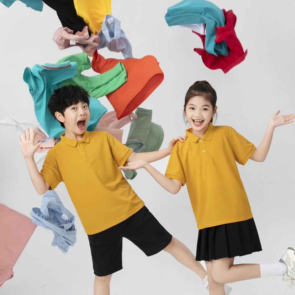 | nameOriginal | Summer Children's short-sleeved lapel polo shirt cotton children's T-shirt summer camp primary and secondary school class uniform printed logo |