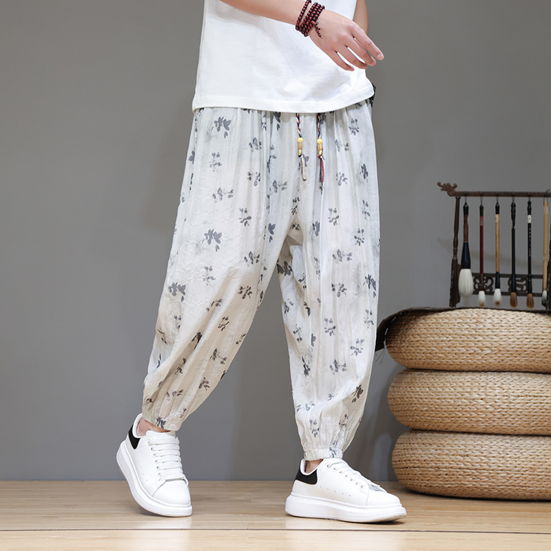 | nameOriginal | Summer Chinese Style Flower Pants Men's Loose plus size Thin Ice Silk Wide-leg Bloomers Casual Hallen Pants AK11045 |