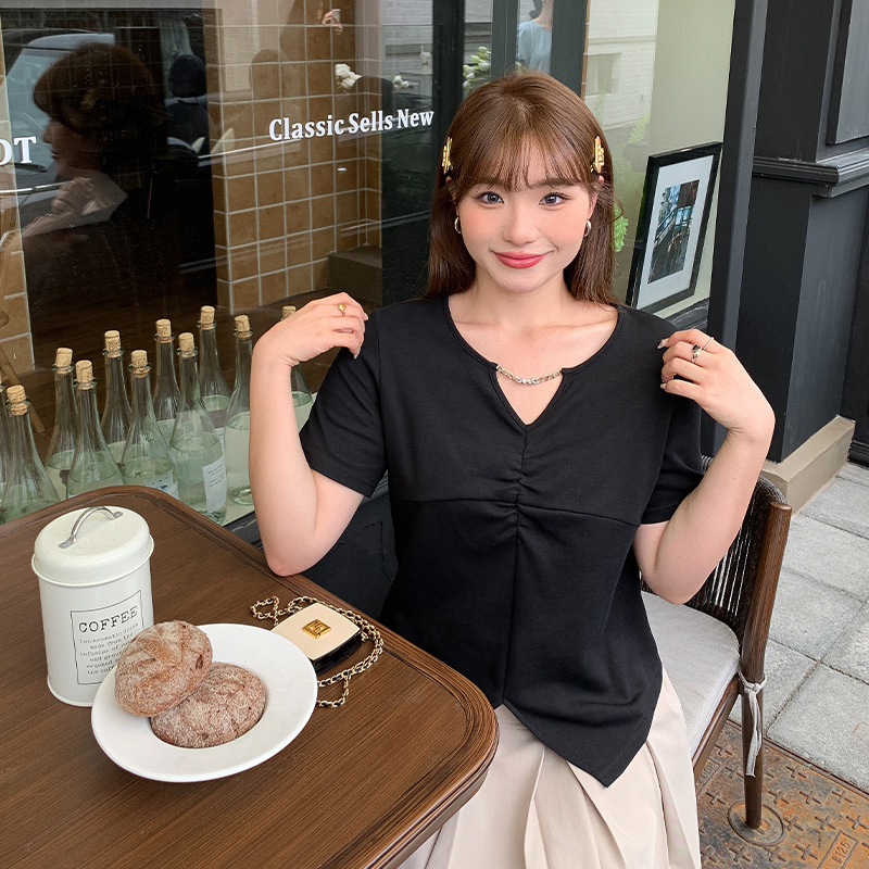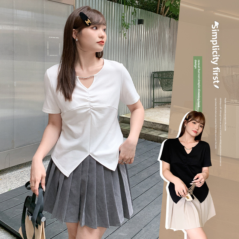 Summer Chubby Girl Plus Size Women's New Arrival Korean Style Chic Chain Hollow-out T-shirt Niche Irregular Short-sleeved 62506