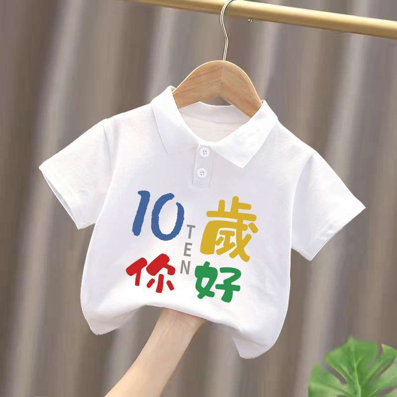 | nameOriginal | Summer clothing for boys and girls birthday one year old new Polo shirt T-shirt cotton short sleeve digital children's foreign style baby top |