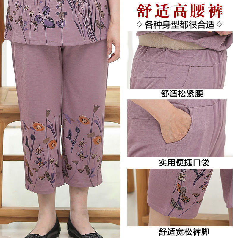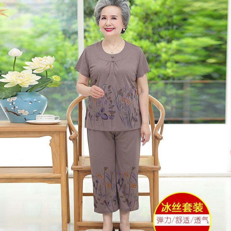 | nameOriginal | Summer clothing for the elderly women's suit ice silk elastic 70-year-old 80-year-old mother old lady clothes grandma short sleeve two-piece suit |