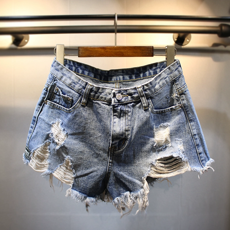 | nameOriginal | Summer clothing Internet celebrity same style large size fat mm high waist ripped denim shorts women's slimming raw edge outer wear a line hot pants trendy |