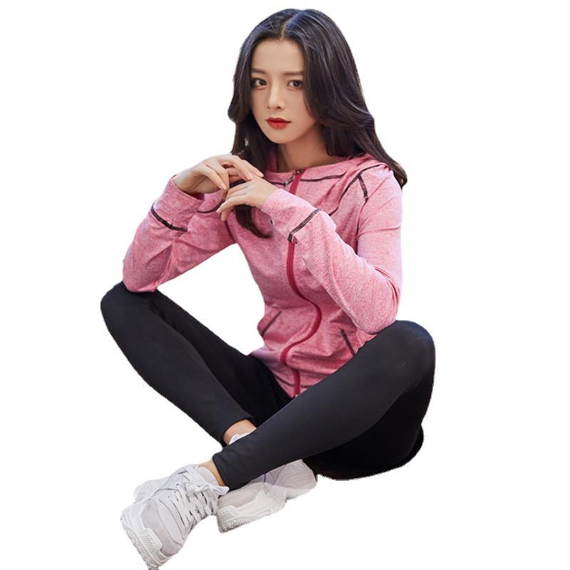 Summer Coat Women's Tight Yoga Clothes Loose plus size Quick-drying Long-sleeved Top Zipper Cardigan Running Five-piece Set
