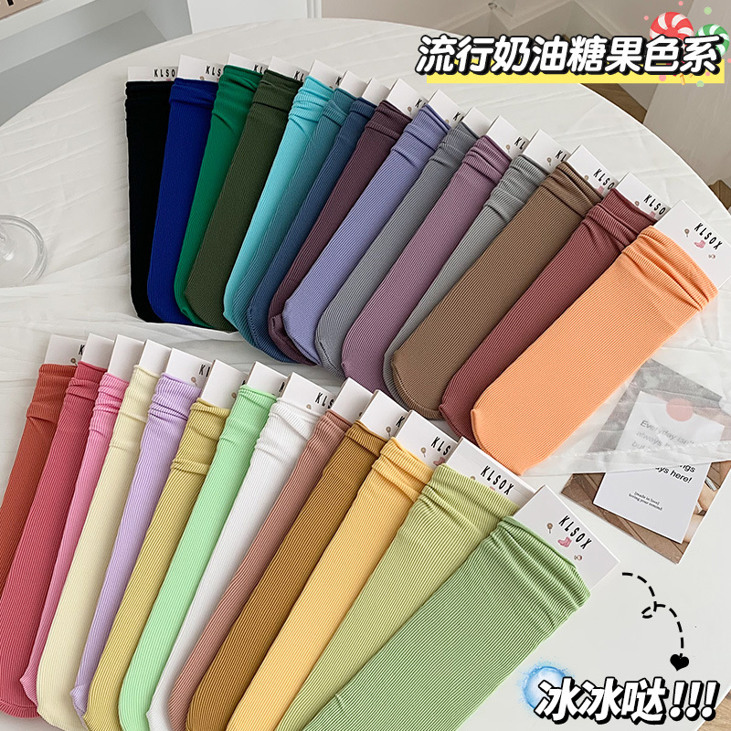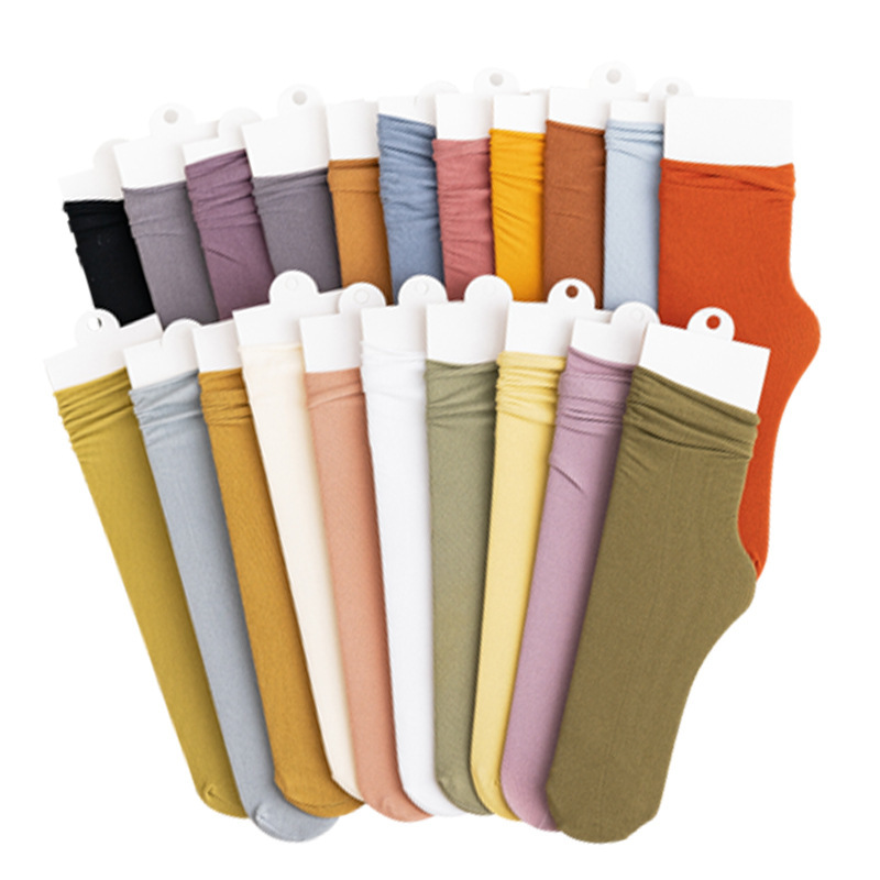 | nameOriginal | Summer Cold Ice Socks Thin Velvet Sweat Absorbent Breathable Stacked Socks Women's Macaron Solid Color Curled Socks |