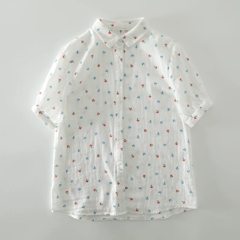 Summer colorful short-sleeved shirt small fresh double layer gauze