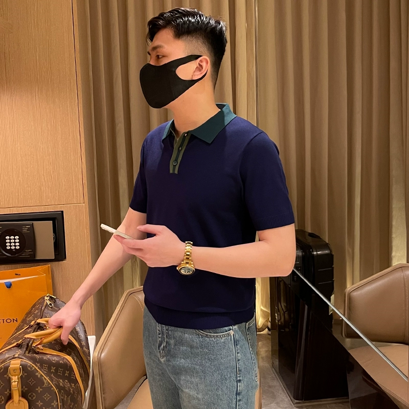 | nameOriginal | Summer contrast color short-sleeved business polo shirt knitted top |