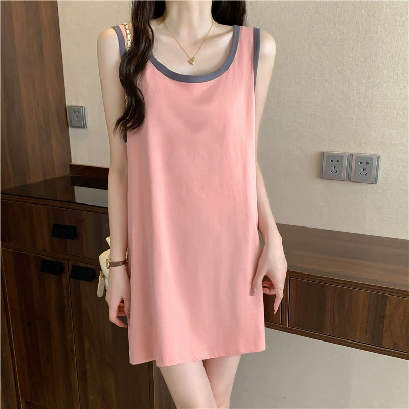| nameOriginal | Summer cool and fast sleeveless suspender pure cotton nightgown solid color simple sexy casual home wear can be worn outside the cotton trendy |