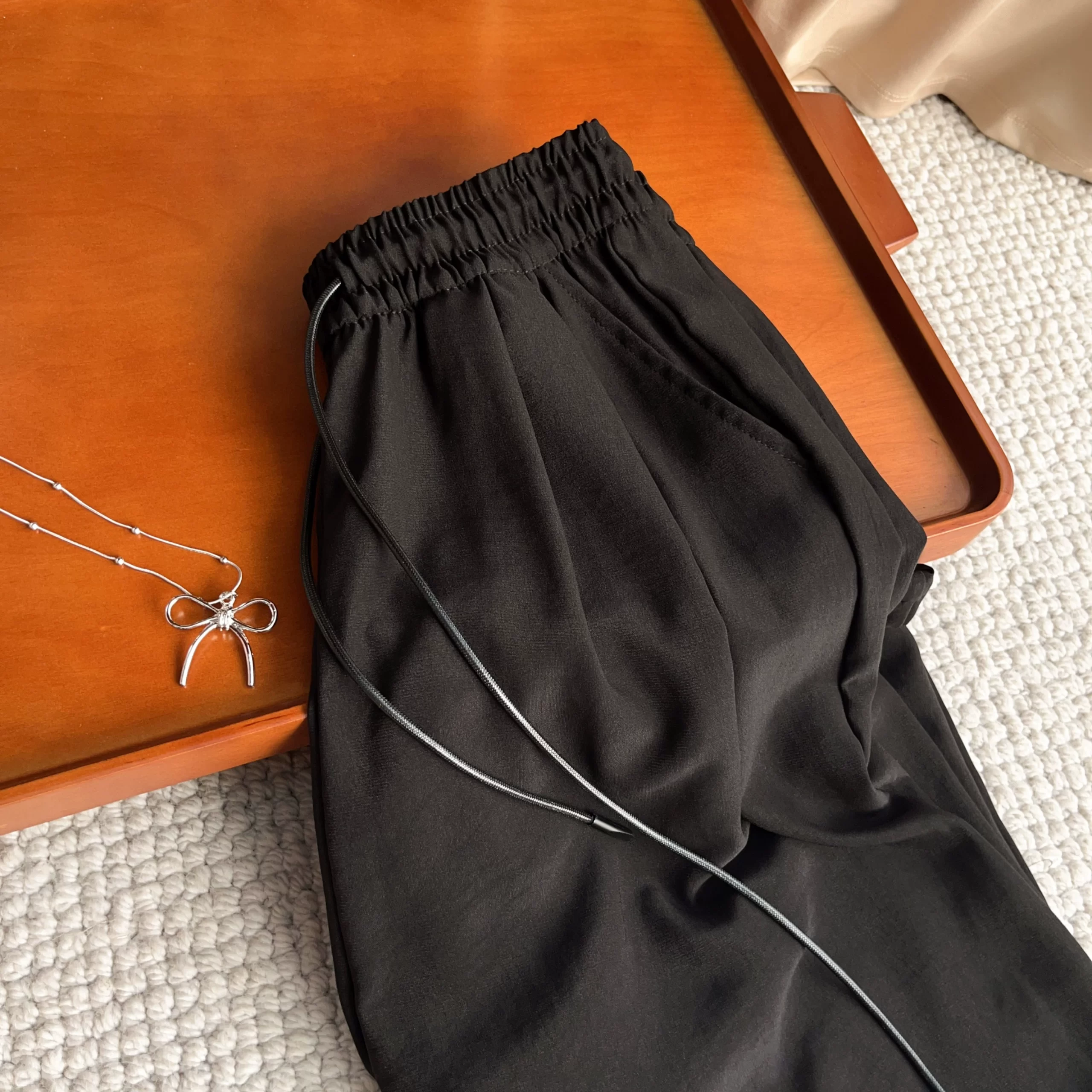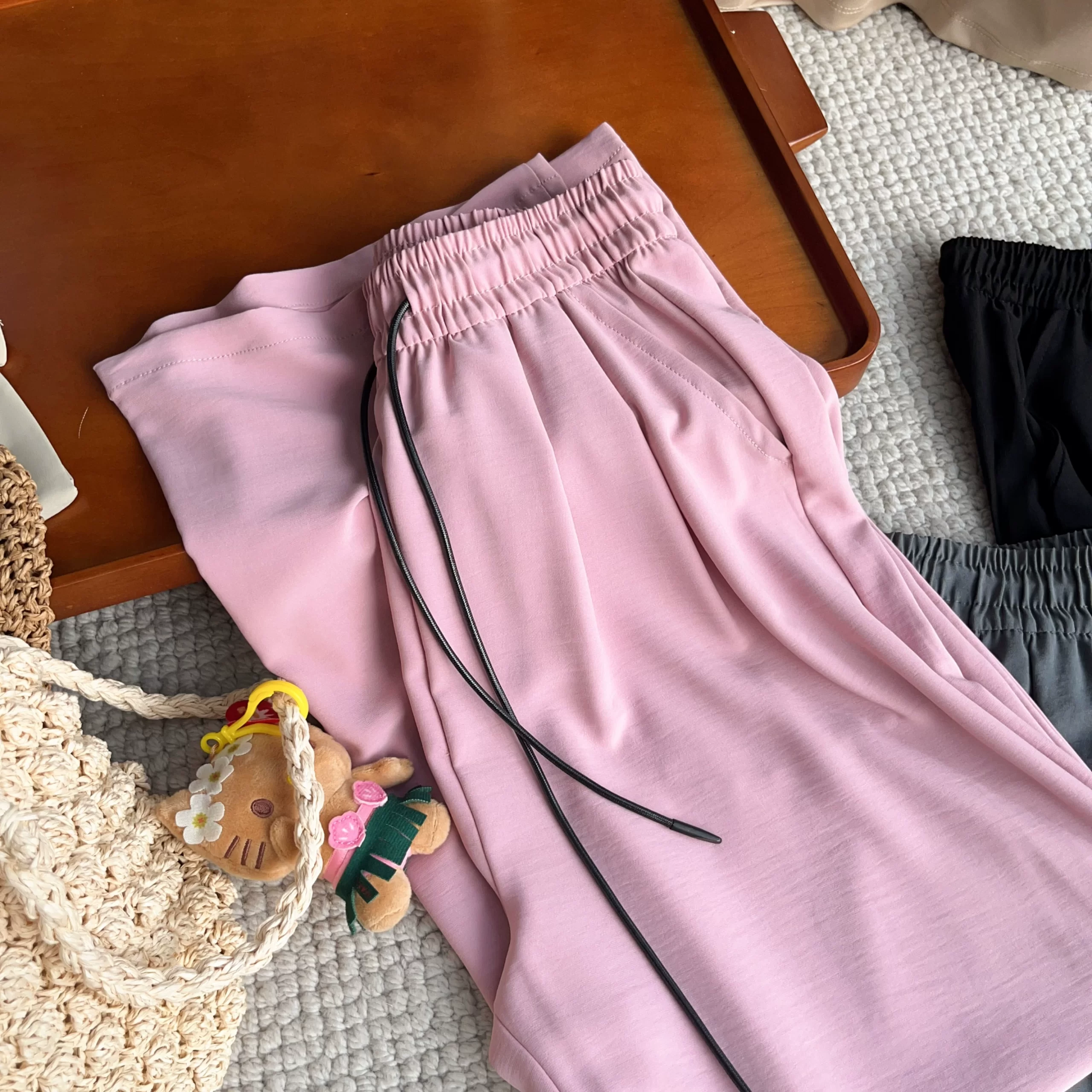 Summer cool slightly wrinkled elastic waist casual wide leg pants