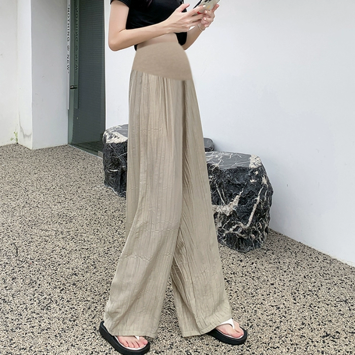Summer cotton and linen belly support loose large size maternity wide leg pants